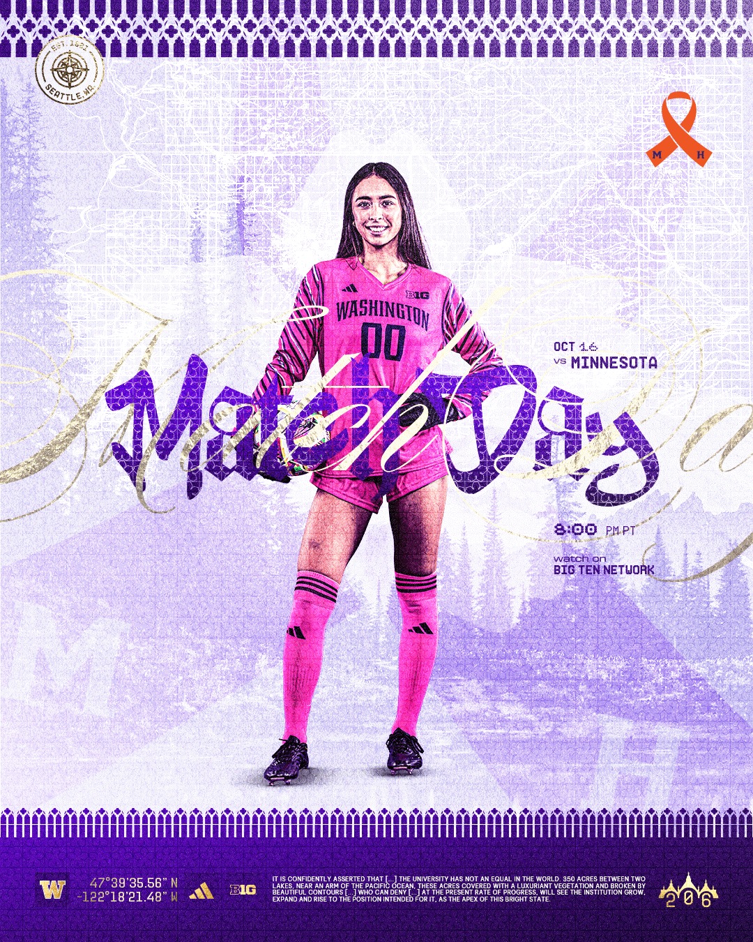 Next Up: Washington travels to Oregon to face the Ducks on October 26 for their final regular season before playing in the 2025 Big Ten Women’s Soccer Tournament. The Huskies will play as the tournament’s top seed out of 10 teams, and their quarterfinal match is currently scheduled for 12:30 p.m. on November 2 at Purdue University. Their opponent will be either the No. 8 or No. 9 seed in the tournament depending on Opening Round results.
